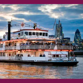Our ever popular Christmas Thames cruise returns on Saturday 12th Dec'26, but this year, due to overwhelming demand, we have supersized! We are delighted to announce that our Christmas cruise this year will be on the most beautiful and unqiue vessel on the Thames - the Dixie Queen paddle steamer.