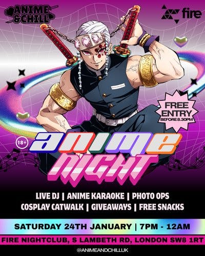 To say thank you for 6 years of support, Anime & Chill UK is teaming up with FIRE to bring you a special one-off Anime Night for FREE (just arrive before 8.30pm!) - a celebration of the community that's been with us from the start, and an open invite to anyone who's ever wanted to experience one of our nights.