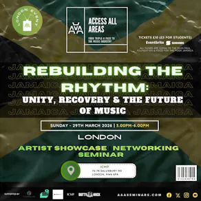 ACCESS ALL AREAS is an up-close and personal music seminar, industry networking event and new artist showcase that aims to be your “Triple-A Pass To The Music Industry”. This unique music seminar is back after a one-year hiatus with a special event entitled "Rebuilding the Rhythm: Unity, Recovery & The Future of Music" with Rekodi Music at ICMP Queen's Park Campus, London NW6, on Sun, March 29th, from 3-6pm!
