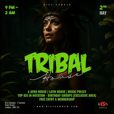 Enter the jungle and lose yourself in the rhythm at Tribal House Saturdays at KISS Camden.