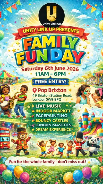 Get ready for a fun-filled day for the whole family! Join us at **Pop Brixton** for an exciting community event packed with entertainment, activities, and great vibes. 📅 **Date:** Saturday 6th June 2026 ⏰ **Time:** 11:00 AM – 6:00 PM 📍 **Location:** Pop Brixton, 49 Brixton Station Road, London SW9 8PQ 🎟️ **Entry:** FREE