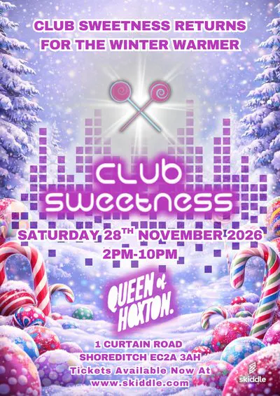Club Sweetness returns for our annual Winter Warmer, bringing the sweetest daytime party back to The Queen of Hoxton for another candy-coated session of pure house music energy.
