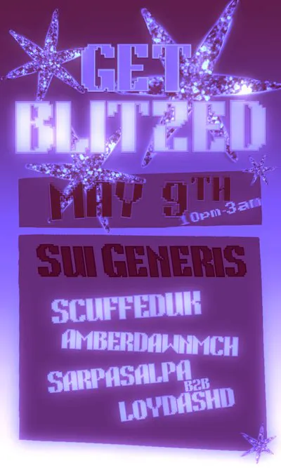 First ever Blitz night at Sui Generis - a night built around jungle, techno and pop from a lineup of diverse DJs who know how to boogie.
