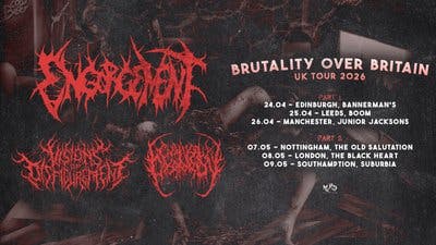 Engorgement, Visions of Disfigurement and Chainsaw Castration join forces for a run of UK shows filled with slam and brutal guttural chaos. Brutality Over Britain hits The Black Heart in Camden on Saturday 8th May 2026