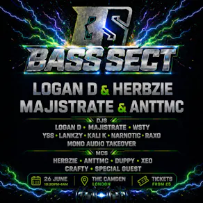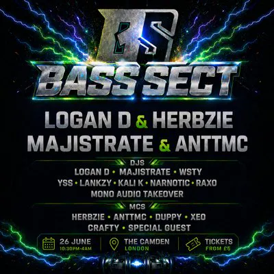 BASS SECT brings a high-energy night of jump-up drum & bass to Camden, London. Taking over The Camden on 26 June, this late-night rave delivers heavyweight sets from Logan D and Majistrate alongside a stacked lineup of DJs including WSTY, YSS, Lankzy, Kali K, Narnotic, Raxo and a Mono Audio takeover.