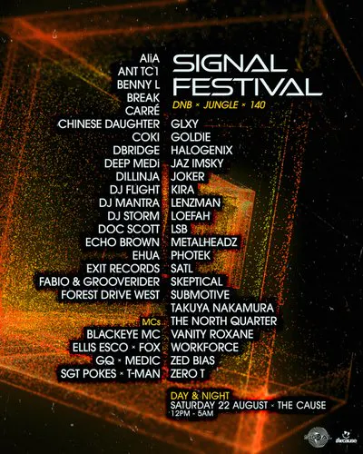 Benny L | Goldie | Dillinja | Break | LSB | Halogenix | Skeptical | Joker | Photek | Lenzman | GLXY | Zero T | Takuya Nakamura | dBridge | MC GQ | Zed Bias | Loefah | Doc Scott | DJ Storm | Fabio & Grooverider | Ant TC1 | Coki | Mantra (Rupture) | Blackeye MC | Deep Medi | SATL | Forest Drive West | DJ Flight | Workforce | T-Man | Exit Records | Chinese Daughter | Submotive | Ehua | Medic MC | SGT Pokes | JAZ IMSKY | Carré | Echo Brown