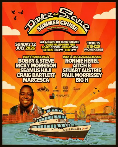We'll be cruising along the Thames from 4pm-9pm all aboard the Dutch Master - With 2 floors of music.