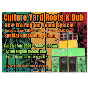 Culture Yard is back for 2026! Hear heavy weight mediation style Dub music with uplifting Roots played on New Era Sound System! A traditional sound system with old skool traditional vintage effects!