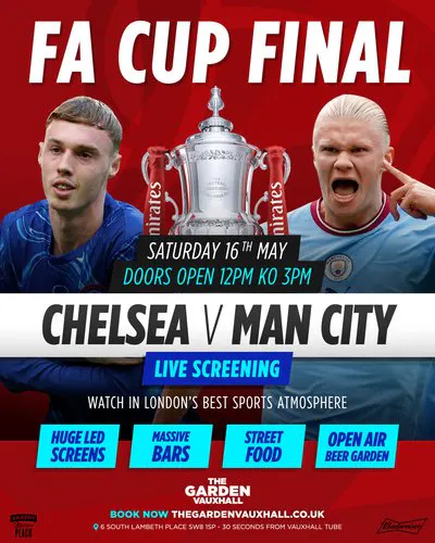 Join us for the biggest match in English football as Chelsea FC vs Manchester City FC go head-to-head in the FA Cup Final!
