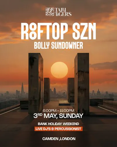Bollywood, desi edits, vibes going from cute golden hour → full send after dark. 6–11PM @ Lock Inn Camden Rooftop Djkrishmusic on deck + live percussion.