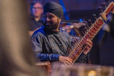 Jasdeep Singh Degun stands out as one of the most innovative and awarded sitarists of his generation. Born in Leeds, he masterfully blends Indian classical music with contemporary influences, reinventing the horizons of the sitar. Trained under the guidance of Ustad Dharambir Singh MBE, Jasdeep has mastered the gayaki ang technique, a lyrical style that imitates the human voice, giving his playing a unique expressive depth.