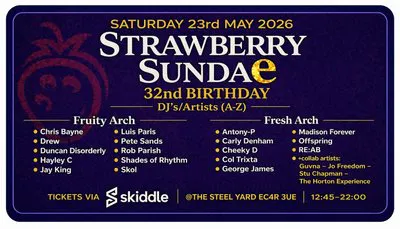 Strawberry Sundae returns to the amazing Steel Yard, Cannon Street in May to celebrate 32 years on the rave scene.