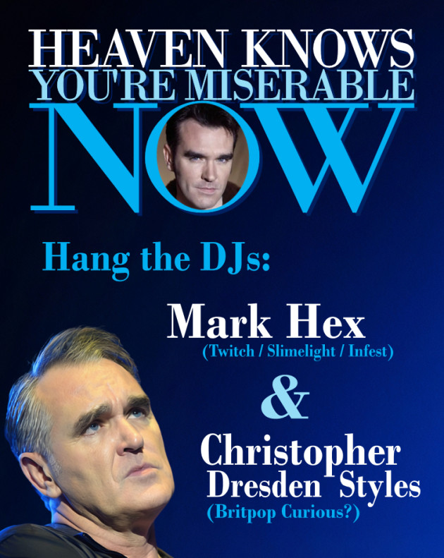 We'll naturally be playing lots of Morrissey & The Smiths, with occasional palate cleansers from the likes of Suede, David Bowie, The Cure, Sparks, Pulp and other complementary artists. But mainly it'll be a whole of Morrissey and The Smiths.