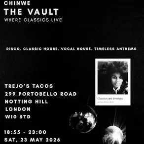 Welcome to The Vault - where classics live. Step into an intimate music experience in the heart of Notting Hill, curated by Chinwe. The Vault is a celebration of timeless sound, bringing together music lovers and dancers for a night of pure energy, nostalgia and connection.