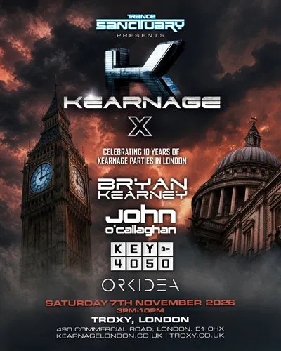 On Saturday 7th November 2026, Bryan Kearney brings Kearnage back to the capital to mark 10 years of pure energy with Trance Sanctuary.