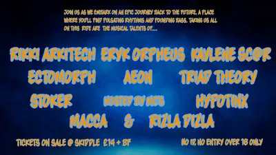 A banging night of freeform hardcore brought to you with the musical talents of Rikki Arkitech, Eryk Orpheus, Kaylene Sc@r, Ectomorph, Triad Theory, Aeon & Hypotinx and the vocal wizardry of MC's Macca & Rizla Dizla