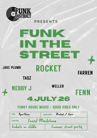 Expect groove-led sets, rolling basslines, and a crowd that knows how to move. From daytime vibes into late-night energy, this is all about good music, good people, and that unmistakable Funk District atmosphere.