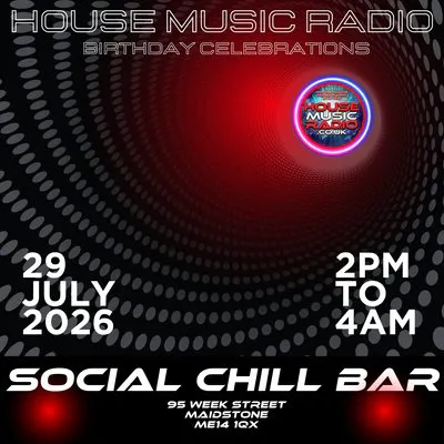 Once again, House Music Radio has another Birthday like we do each year. We would like you to join us for this birthday celebration at the newly redeveloped Social Chill Bar in Maidstone. We will have multiple styles of dance music being played throughout the day and night. Most of the DJs will be the hosts of shows on our programming here at House Music Radio.
