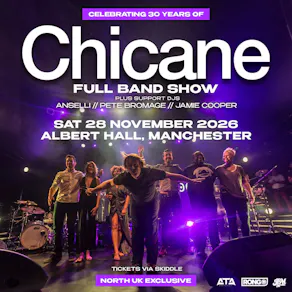 Fans of electronic music are set for an unforgettable night as legendary producer and DJ Chicane brings his signature sound to the North UK for a highly anticipated, exclusive performance. For this special event, Chicane will be performing with a full live band, adding an extra dimension to his iconic sound.