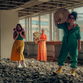 La Perla is a percussion and vocal trio from Bogotá, inspired by the traditional sounds of Colombia’s Caribbean coast and influenced by a range of rhythms including Dominican merengue, champeta, punk, hip- hop, and beatboxing.