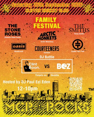 The MCR Rocks Family Festival returns to Clifton Cricket Club, Salford, next September for another massive day of music, fun and community spirit. Expect an incredible line-up of live tribute bands celebrating Manchester's legendary sound alongside DJs and very special guests. Headlining the party is an epic DJ battle as the real Bez (Happy Mondays) goes head-to-head with Clint Boon (Inspiral Carpets) in a clash packed with indie anthems and Madchester energy.