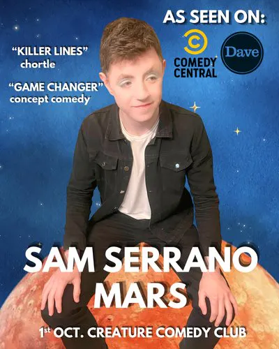 'mars' is the debut tour from star of comedy central & dave, Sam Serrano. In 2020 Sam was the victim of a hate crime and in 2026 they're monetizing on it through the show. Talking about what it means to be unapologetically yourself, where bigotry stems from, and how experiencing hatred can make you a significantly stronger person at the end (there's also a lot of penis jokes, but i wanted to make myself sound like an artist) You can expect an hour of "killer lines" (chortle) from a "game changer of an act" (concept comedy) who has built a reputation on the circuit for being one of the most unique voices in recent years. Tour Support for Tom Stade, Brennan Reece, and Stephen Bailey