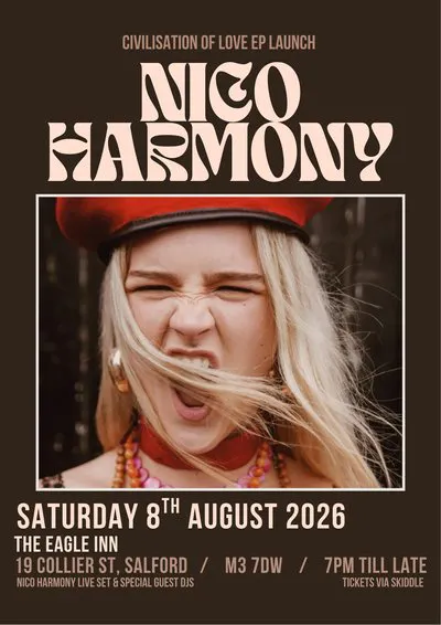 Join Nico Harmony at the iconic Eagle Inn for the official launch of the 'Civilisation of Love' EP.