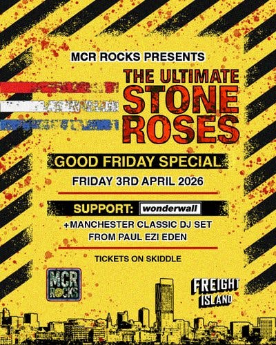 Experience live tributes to The Stone Roses and Oasis, performed by two of the UK's leading tribute acts, delivering all the anthems, energy, and singalong moments that defined a generation.