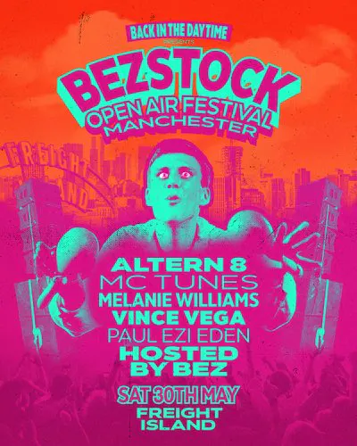 Hosted by Bez of the Happy Mondays, alongside fellow Manchester legends. Including Altern8 DJ Set, Mc Tunes, Vince Vega & Melanie Williams (Sub Sub) Live and DJ set, Plus more including MCR Rocks Resident Paul Ezi Eden.