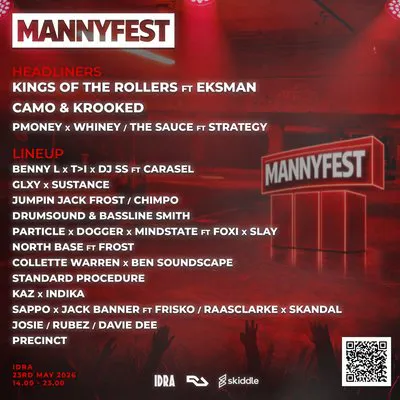 Mannyfest 2026 drop our biggest line up to date across 2 arenas inside the amazing Idra space.