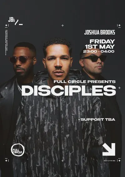 Full Circle welcomes Disciples to Joshua Brooks on Friday 1 May. The South London trio head to the basement for a headline club set centred around the era that shaped the brand.