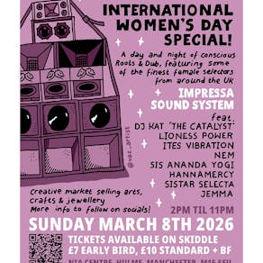 A special afternoon and evening of conscious roots & dub music with a one-off female only line-up to honour this day International Women's Day
