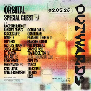 the ORB | Orbital | Moodymann | Danielle | Black Grape | LTJ Bukem | Carl Craig | Octave One | A Certain Ratio | Paranoid London | Midland (UK) | Pearson Sound | tom middleton | DJ PIERRE | Factory Floor | Phil Hartnoll | Josey Rebelle | rRoxymore | Annabel Fraser | OK Williams | Suze Ijó | Tarzsa | Suns Of Acid | Urbi | Natalie Robinson