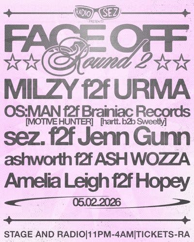Rather than going back 2 back, the djs will clash face on, exchanging energy and testing their skills (and ears), in this intimate 360 set up.