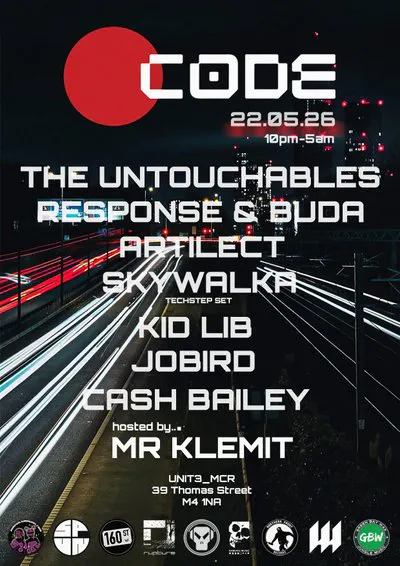 CODE is back.. Full force bank holiday special inbound for Friday 22nd May.. This one's running all the way through from 10pm til 5am at Unit3 in the Northern Quarter, with a line up selected as always, to bring you only the best in real underground jungle & dnb..
