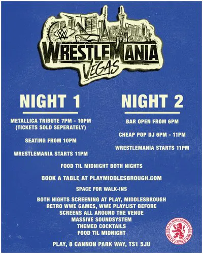 (Please note we're hosting a Metallica Tribute Gig before Wrestlemania which will finish at 10:30pm - gig tickets can be bought on our website)