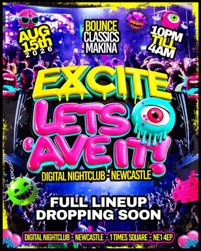 Excite are teaming up with the hugely successful brand Let's Ave It! on the 15th August, bringing you full club production from both brands along with a stacked, high energy line-up.