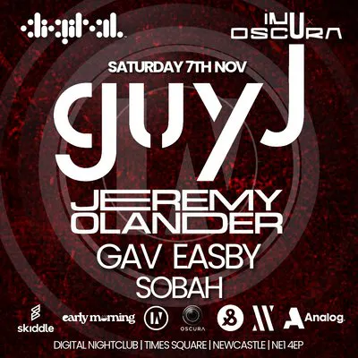 inU x OSCURA present Guy J for an extended set with Jeremy Olander at Digital in Newcastle - NOT TO BE MISSED!!
