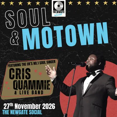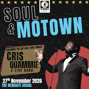 Join us on 28th November with Cris Quammie & his live band paying tribute to some of the greats of Soul & Motown including Stevie Wonder, Lionel Richie, The Temptations and Luther Vandross with classics such as 'Superstition', 'All Night Long', 'My Girl' and 'Never Too Much'.
