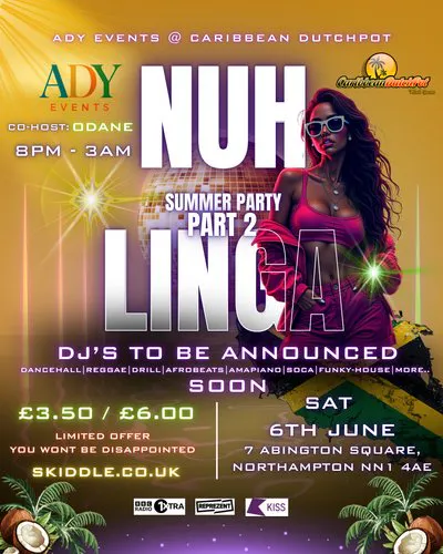 NUH LINGA – Summer Party Part 2 returns to Caribbean Dutch Pot for another unforgettable night of music, energy, and vibes.