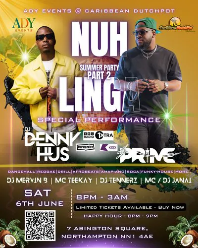 NUH LINGA – Summer Party Part 2 returns to Caribbean Dutch Pot for another unforgettable night of music, energy, and vibes.