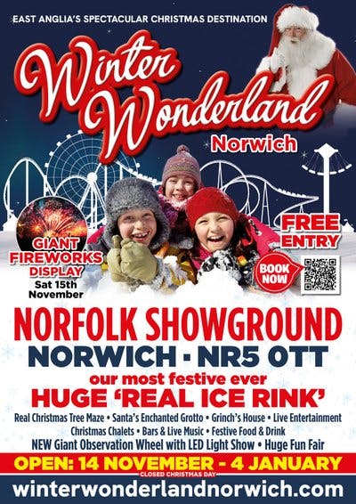 Experience the ultimate Christmas celebration as Winter Wonderland Norwich returns to the Norfolk Showground for its fourth spectacular year of festive fun. Opening Friday 14th November, the event runs through to Sunday 4th January (see website for opening days).