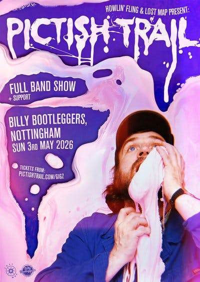 Pictish Trail, AKA Johnny Lynch, has just completed work on a brand-new album — LIFE SLIME — a sticky, shimmering swirl of sound and oooze (both metaphorical and literal). To celebrate, he returns to the stage in 2026 accompanied by his full live band. These shows bring the new songs to life in bold, expansive form — rhythmic, euphoric and immersive, balancing motorik pulse with warped pop melody and raw emotional release. Expect tenderness, weirdness, and a generous dollop of goo.