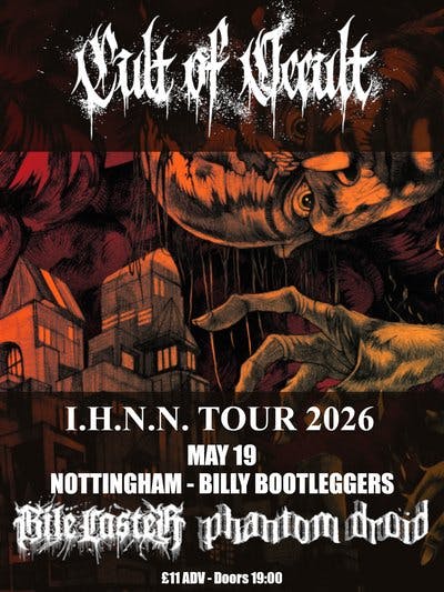 French doom amplifier worshipers Cult of occult stop at Billy Bootleggers Nottingham after their upcoming appearance at desert fest London. Phantom droid will be opening with their experimental doom and leister legends bile caster will be bringing their evil sound for a night of doom.