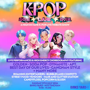 Get ready to unleash your inner idol! K-Pop Live - the most magical K-Pop celebration to hit the UK! Prepare for mind-blowing performances, incredible production, and the ultimate fan experience at Binks Yard in Nottingham! 🌟
