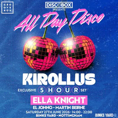 For our debut, we welcome disco heavyweight Kirollus for an exclusive 5-hour extended set at Binks Yard on Saturday, 27th June 2026.💥