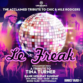 This Easter Sunday, get ready for a night of glittering disco, unstoppable funk, and feel-good anthems as Le Freak - The Ultimate CHIC & Nile Rodgers Tribute takes over Binks Yard!