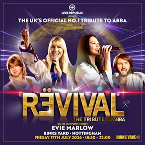 Prepare to be dazzled as REVIVAL - the UK's NO1 ABBA tribute show - brings their phenomenal show of S.O.S and Mamma Mia to Nottingham hottest outdoor venue, Binks Yard! ✨