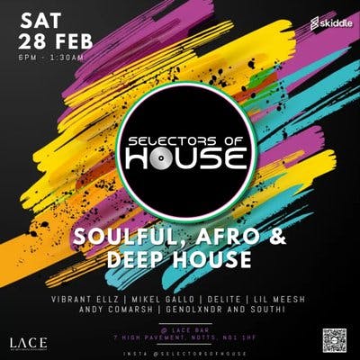 Join Selectors of House for a night of great vibes and energy with DJ's spinning the best in Soulful, Afro and Deep house music.