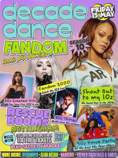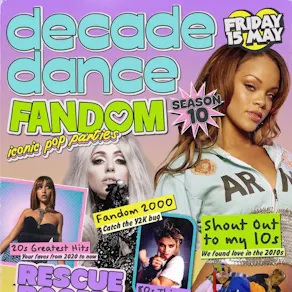 Fandom: Decade Dance takes you on a pop journey through the ages, from 80s Top of the Pops hits, to 20s Spotify bangers! Set times will be released closer to the time, and let us know what you want to hear with requests when you grab your ticket.
